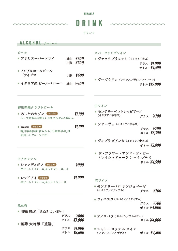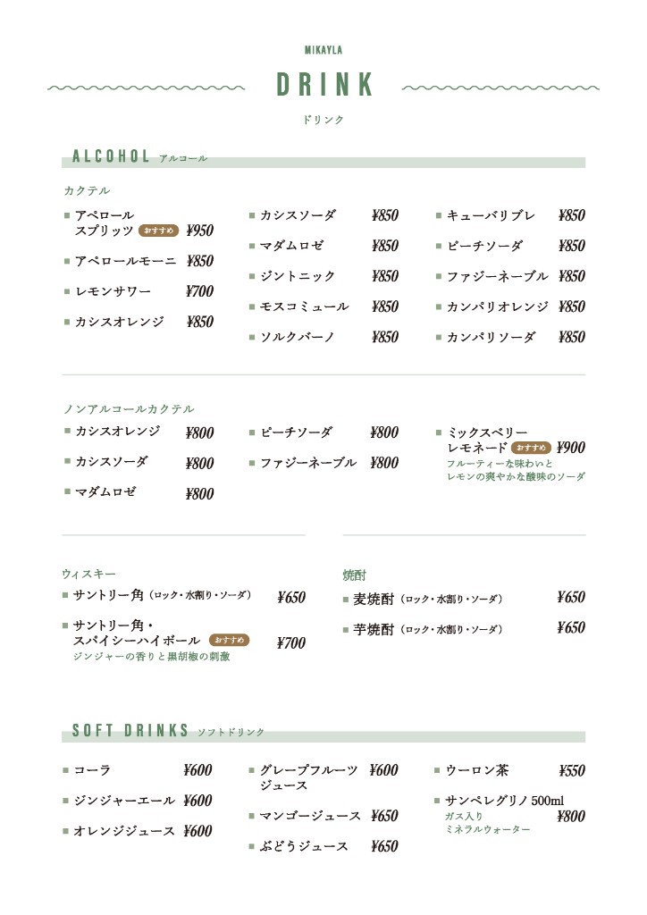 ※予約状況により変更になる場合がございます。予めお電話でご確認ください。